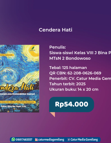 TEMPAT KERJAKU MADRASAHKU Himpunan Materi Kajian Keislaman Insan Fastabiq Penulis: Sukahar Ahmad Syafi’i, S.Th.I., M.E. Muhammad Rifqi Arriza, Lc., M.A. Ahmad Syarif, S.Th.I., M.Pd. Aris Widodo, S.Sy. Tebal: 178 halaman QR CBN: 62-208-8927-015 Penerbit: CV. Catur Media Gemilang Tahun terbit: 2024 Ukuran buku: 14 x 21 cm Harga: Rp65.000 Blurb: Buku ini adalah sebuah karya… selengkapnya
