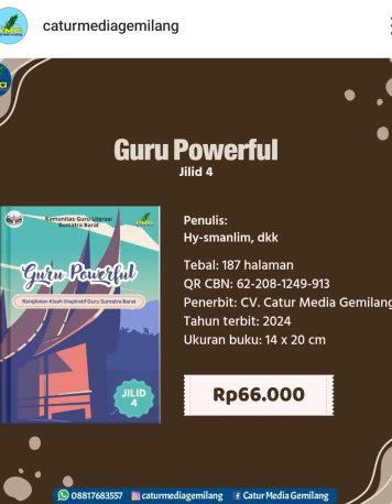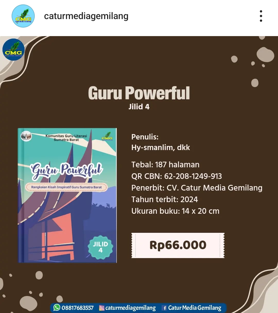Rp 57.000Guru Powerful Jilid 3 Penulis: Komunitas Guru Literasi SUMBAR Tebal: 221 halaman QR CBN: 62-208-3217-739 Penerbit: CV. Catur Media Gemilang Tahun terbit: 2024 Ukuran buku: 14 x 20 cm Harga: Rp67.000 Blurb: Terkadang langit yang kelam bisa cerah tatkala pelangi indah datang menghiasinya. Terkadang sendu sedan tangis bisa hilang jikalau senyuman indah dari seberang mampu… selengkapnya
